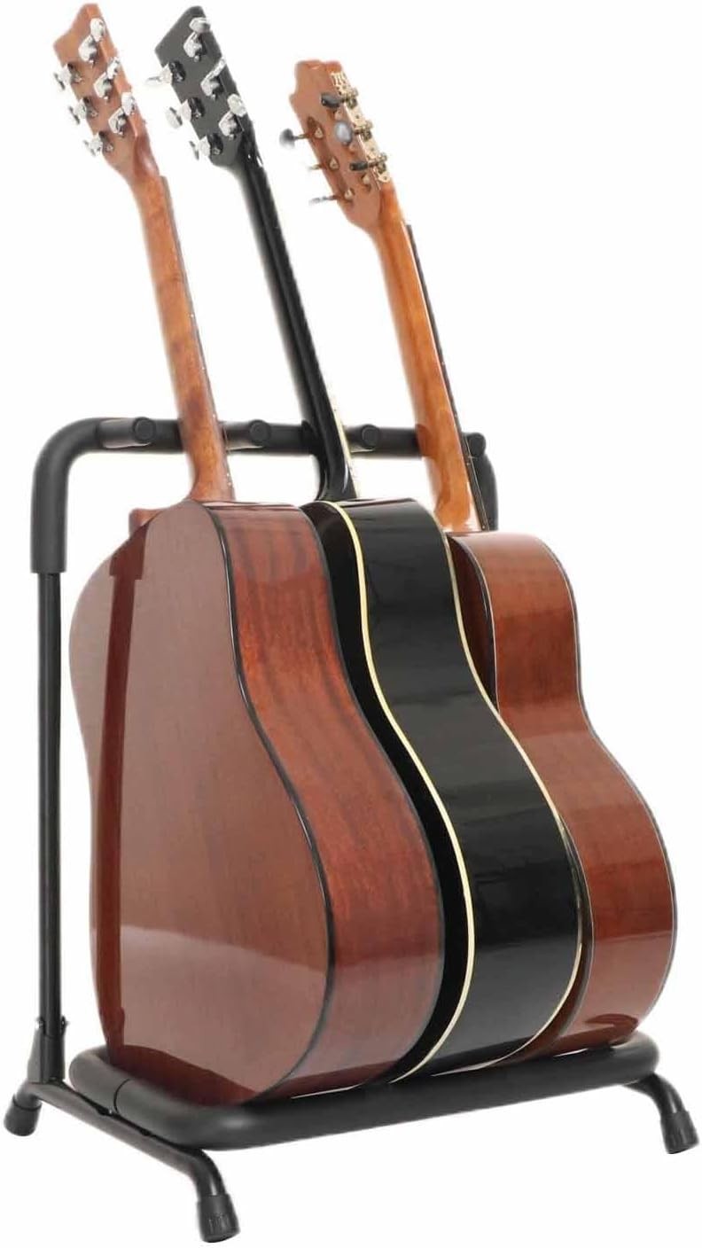 - 【Holds 3 Guitars or Basses】: This Guitar Rack issecurely displays and stores three instruments simultaneously, including acoustic/electric guitars and bass guitars, ideal for stages, studios, or home use